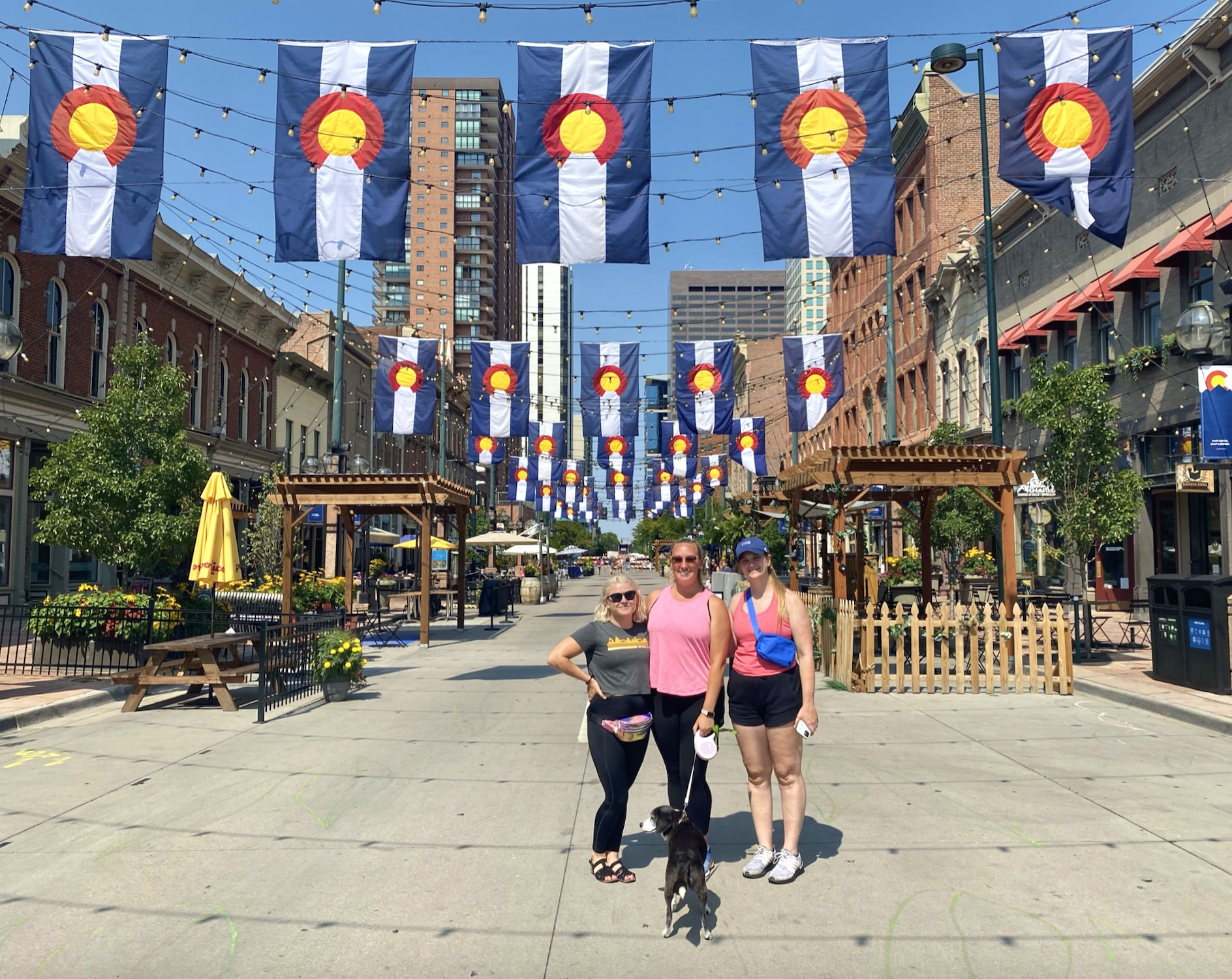 Larimer Square - Larimer Square is always decked out, either with Christmas lights, Colorado flags, or in support of local sports teams. There is a great pet store here, Dog Savvy. There are also shops and restaurants with outdoor seating.