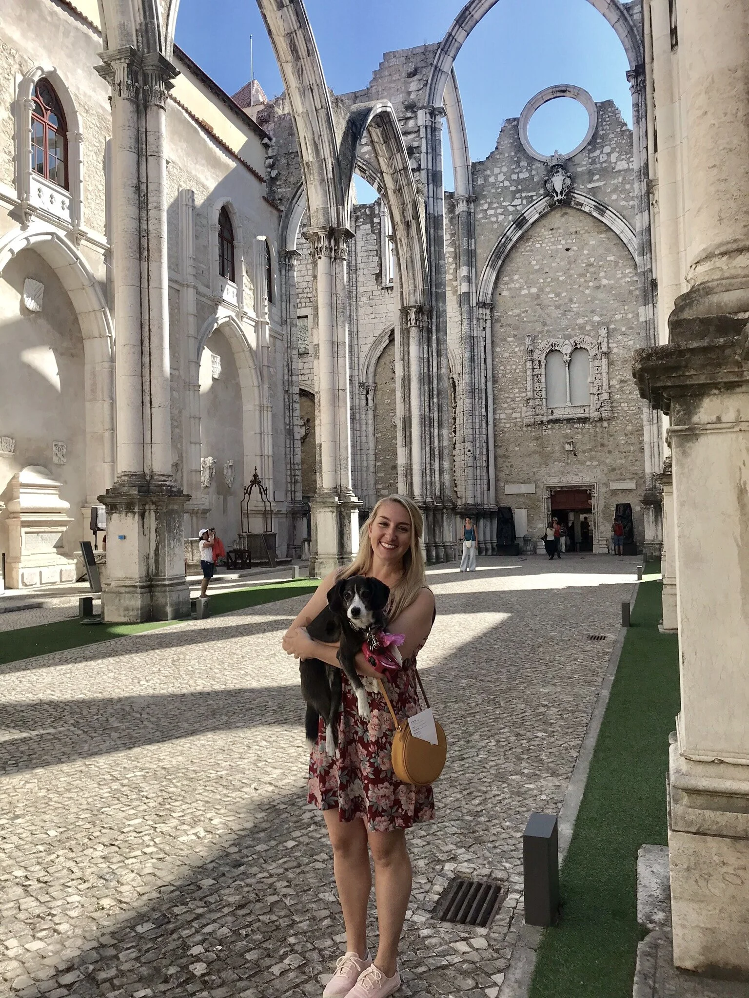 The ruins of a convent that was partially destroyed in the earthquake of 1755. There is a cat that lives on the grounds who isn’t always friendly with canines, so they only let Alice in if I carried her!